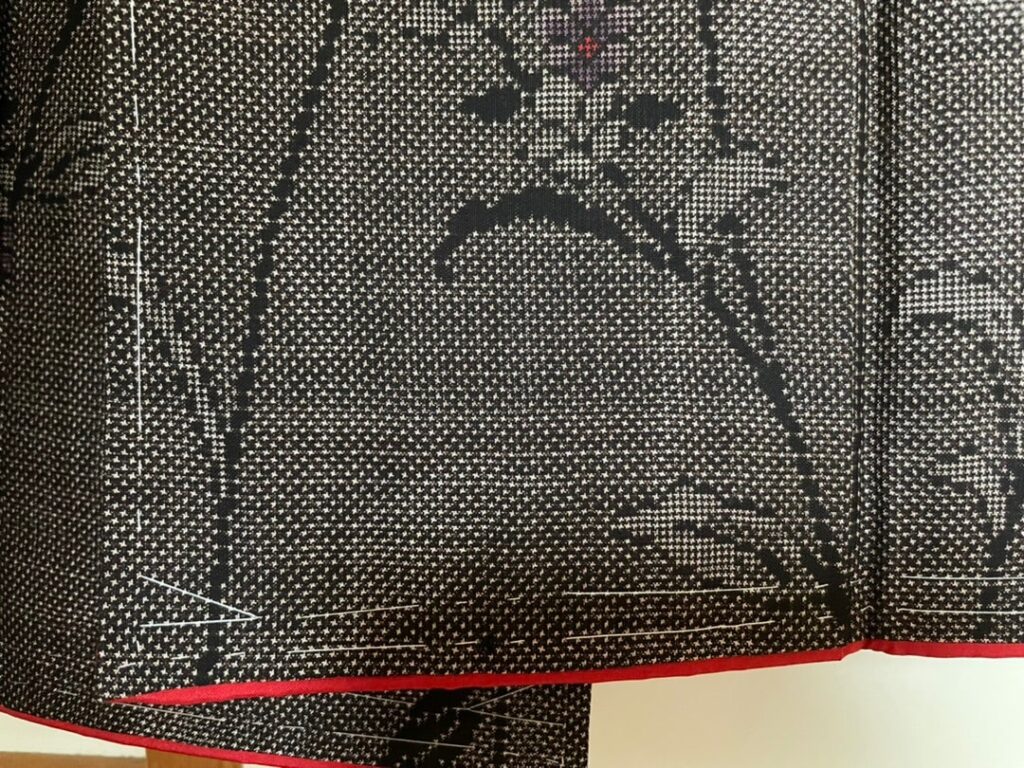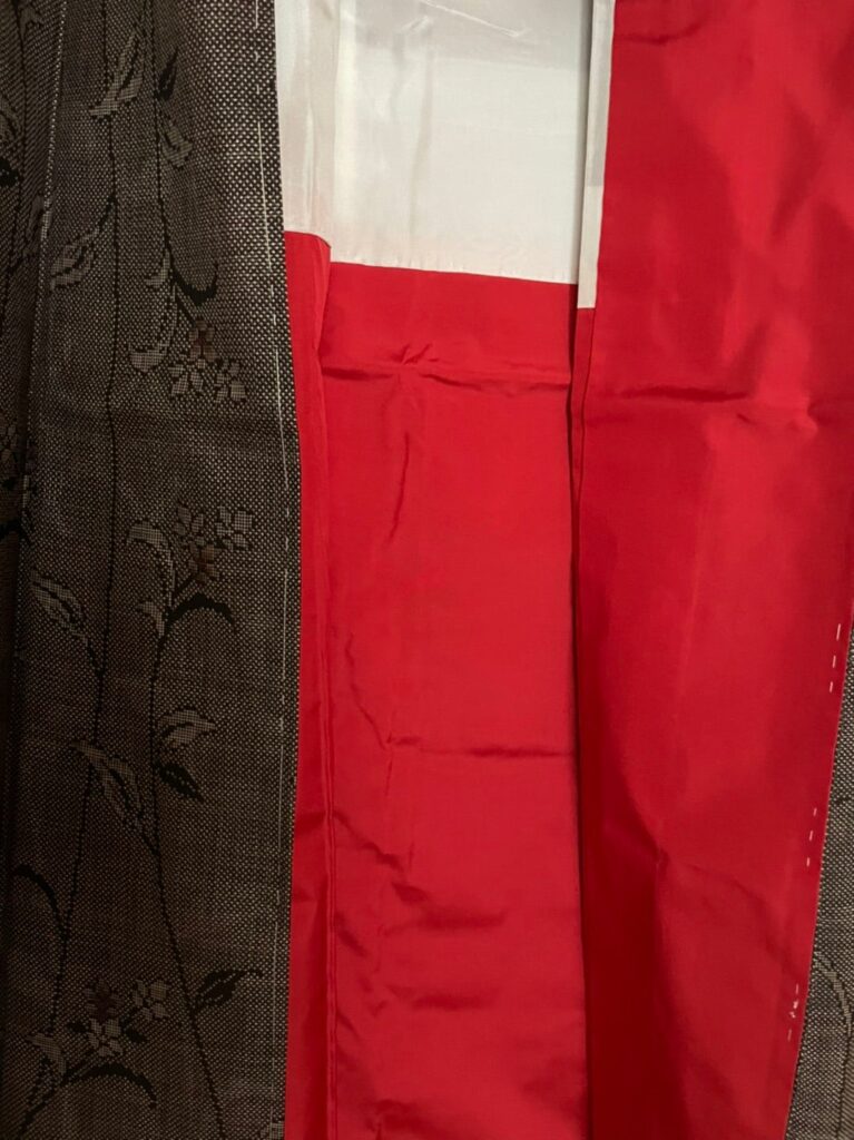 胴裏を正絹に、八掛をおとなしい赤に