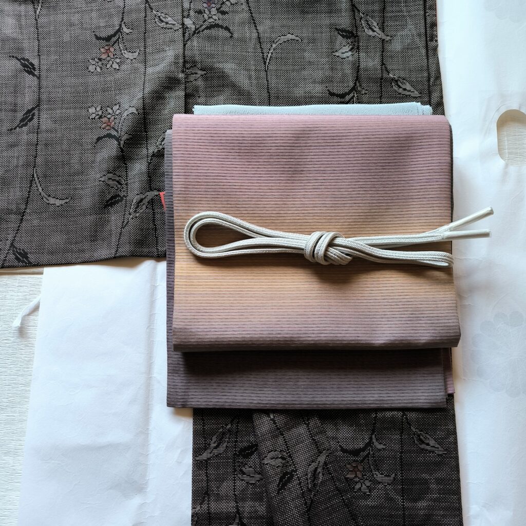 すぐ上の画像のコーディネートが手持ちの帯と小物のなかで一番好きだから