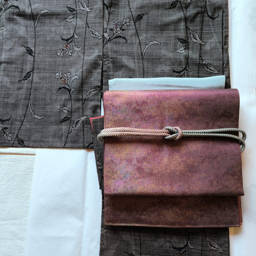 「茶色×紫」ブロガーさんのお着物の茶色とはあきらかに違います。