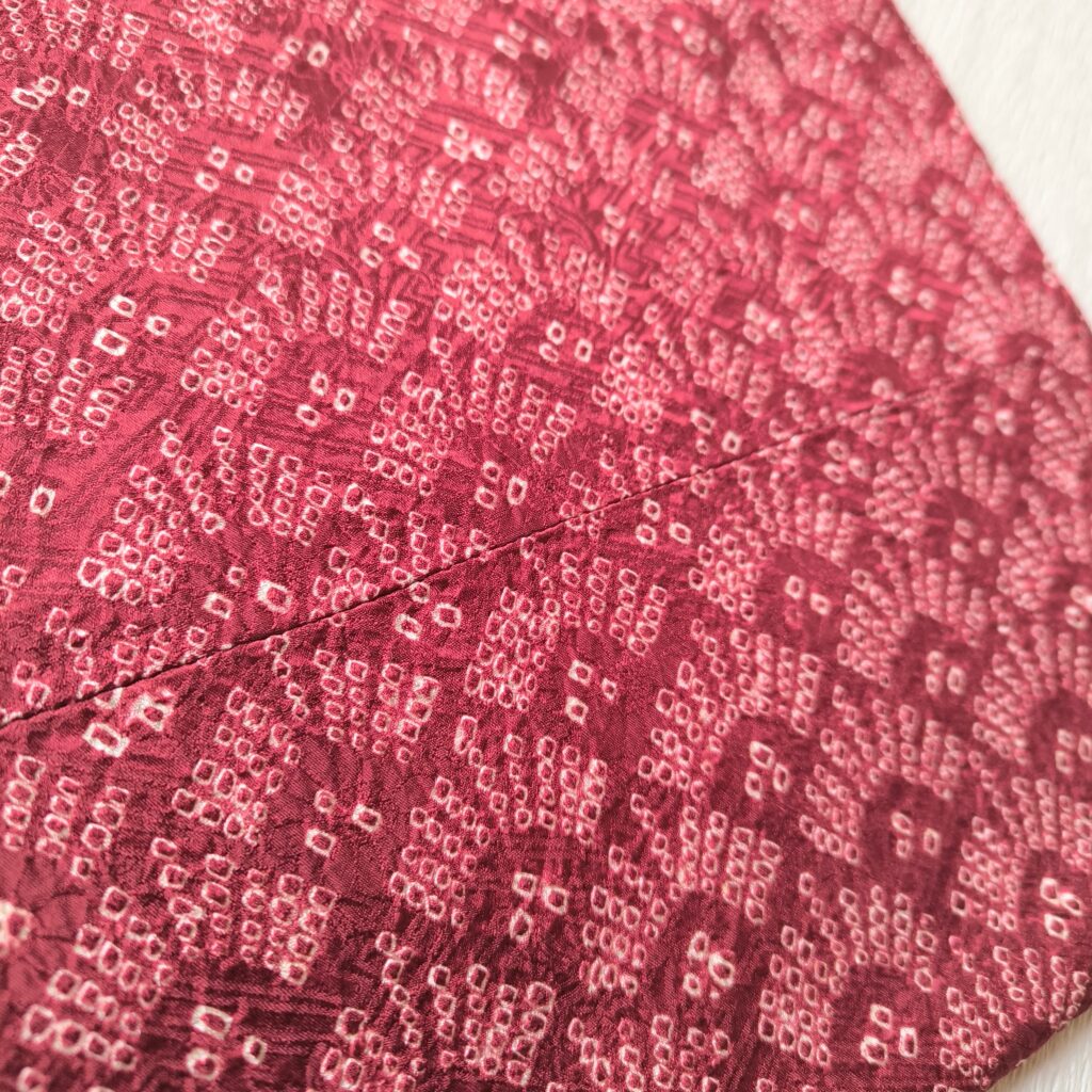 チャコールグレー小紋に赤の絞りの今日のコーディネートには、こんな帯揚げがあったらもっといいと思います。映える装いになりそう。