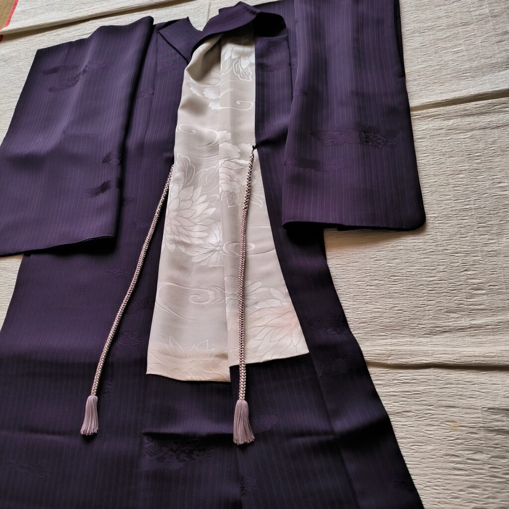 そういえばこの大好きな紫の羽織につけた羽織紐は、4,5年前に買ったのですが、やっと探し出した記憶があります。